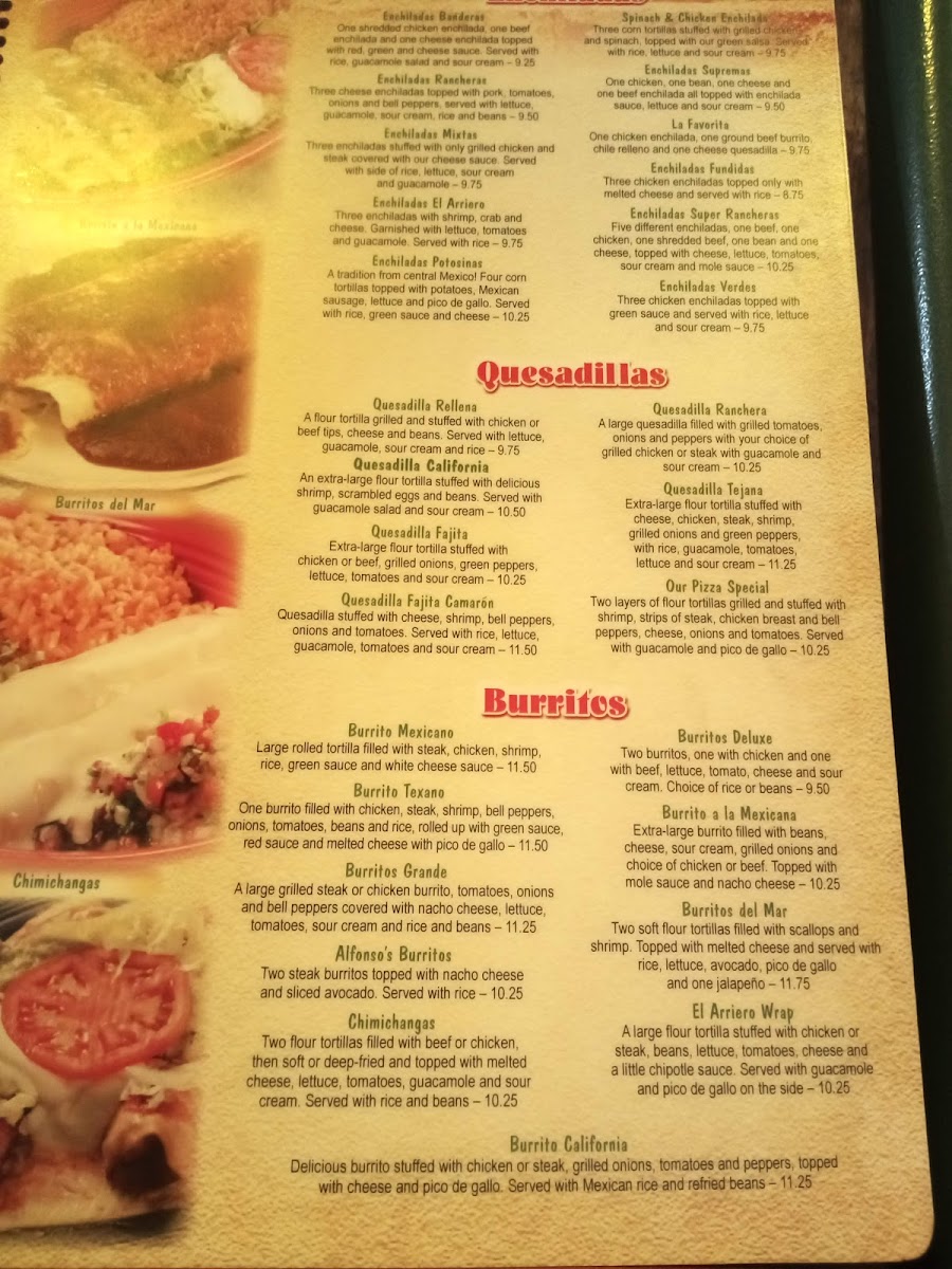 Arriero’s standout offerings begin with their appetizers, like the creamy Cheese Dip and the savory Bean Dip. These are essential starters that will tantalize your taste buds, setting the stage for what’s to come. The menu extends to delicious quesadillas, where you can indulge in the Quesadilla Rellena, stuffed generously with chicken or beef tips, accompanied by fresh toppings like guacamole and sour cream. Alternatively, the Quesadilla California showcases shrimp and scrambled eggs, taking your taste experience to another level.